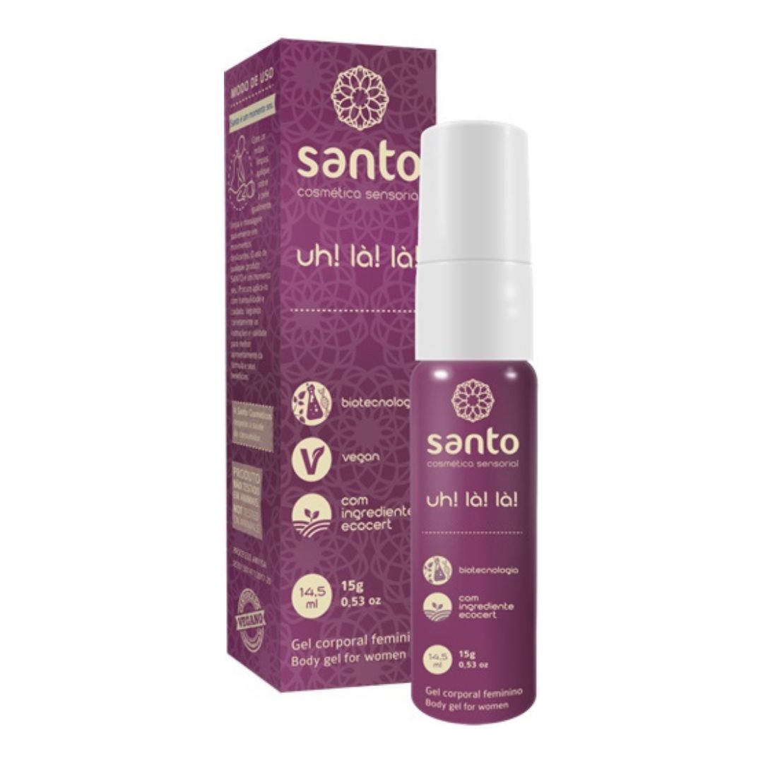 UH LÁ LÁ Feminino, da Santo Cosméticos, é um gel excitante feminino com princípios ativos que auxiliam a aumentar o aporte sanguíneo na região íntima feminina, intensificando assim o desejo e os sentidos. Sua fórmula contém óleos essenciais, biotecnologia e ingredientes com selos europeus (de qualidade) Cosmos e Ecocert.